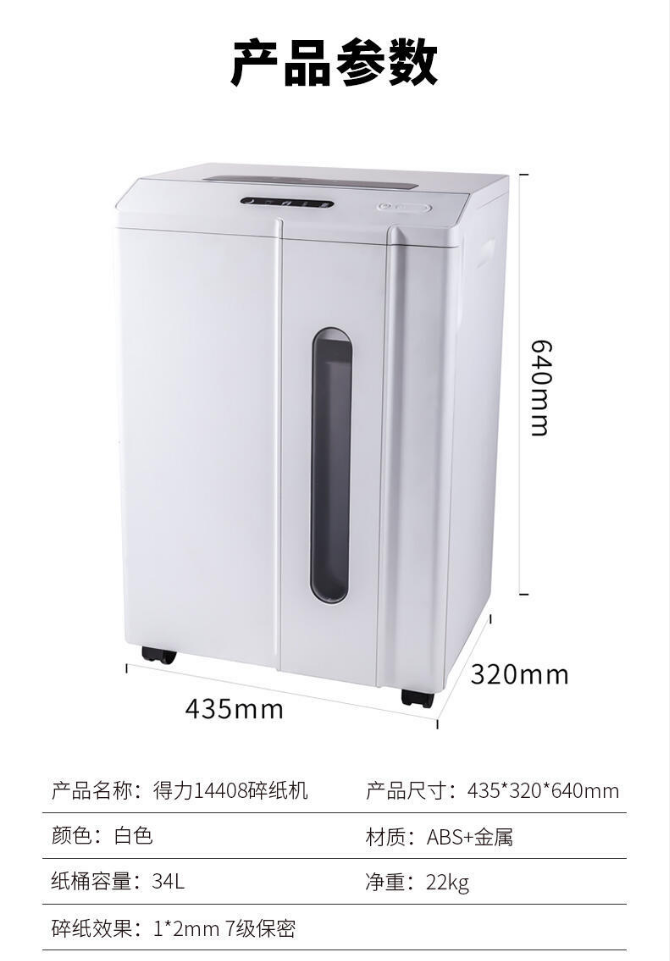 商品名稱:得力(deli)七級高保密碎紙機大容量 30分鐘連續(xù)碎紙機 得力(deli)碎紙機14408