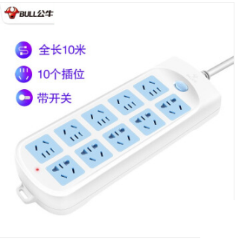 商品名稱:公牛(BULL) GN-605新國標(biāo)插座(10位總控10米)公牛插座GN-605