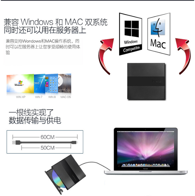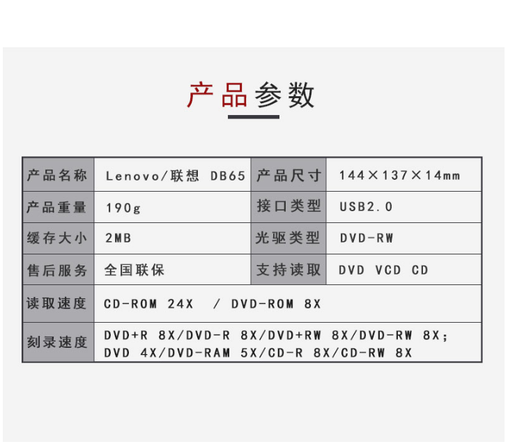 商品名稱:聯想(Lenovo)USB外接光驅 筆記本 臺式機 通用光驅 DVD刻錄機DVD-RW DB65 USB外接光驅