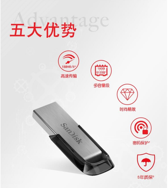 閃迪(SanDisk)U盤 CZ73酷鑠 USB3.0讀速150MB/s 閃迪金屬外殼64GBCZ73酷鑠