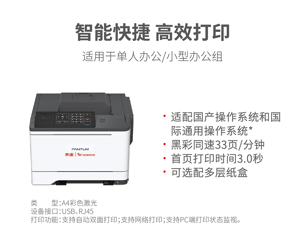 商品名稱:奔圖 (Pantum) CP2510DN A4 彩色打印機 彩色激光單功能打印機