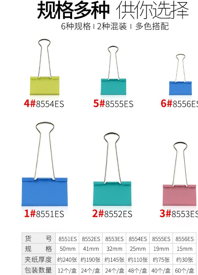 商品名稱:得力(deli)24只41mm彩色長尾夾票夾 2#金屬燕尾夾票據(jù)夾子 辦公用品 8552ES 得力(deli)彩色長尾8552ES