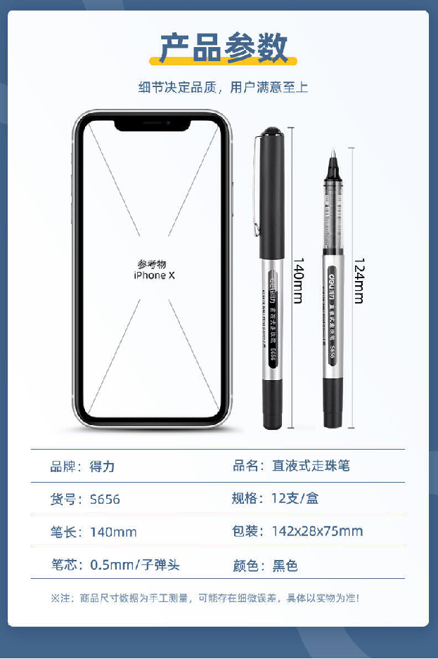 商品名稱:得力(deli)直液式走珠筆考試辦公中性筆簽字筆水筆12支裝 0.5mm 子彈頭黑色12支裝 得力直液式走珠筆S656