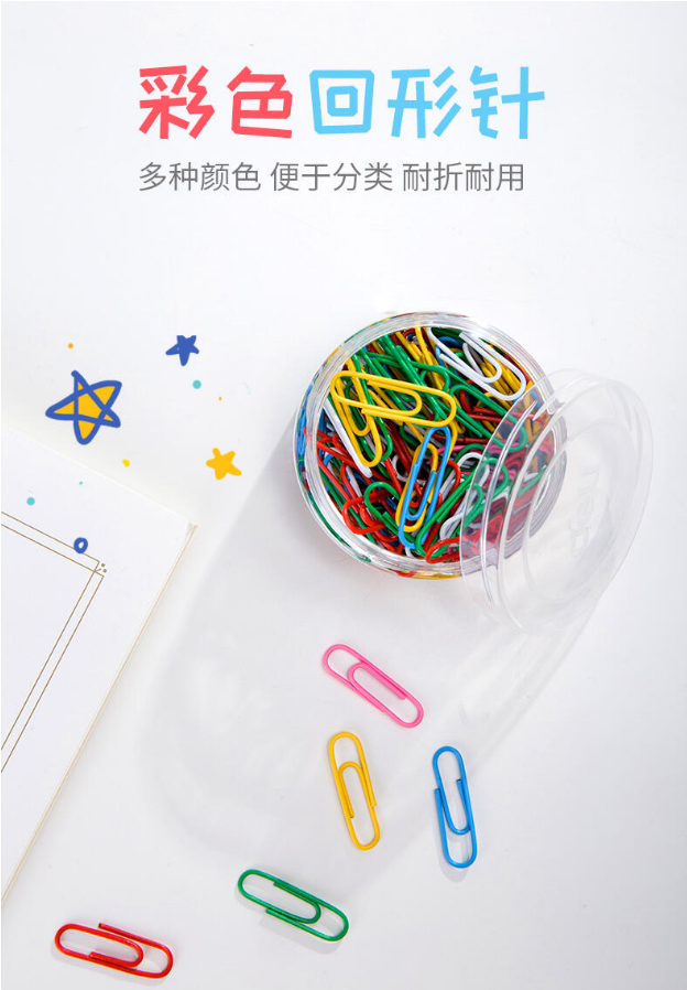 商品名稱:得力(deli)彩色回形針大號3號29mm/盒 曲別針收納盒財務(wù)裝訂辦公用品得力(deli)曲別針0038