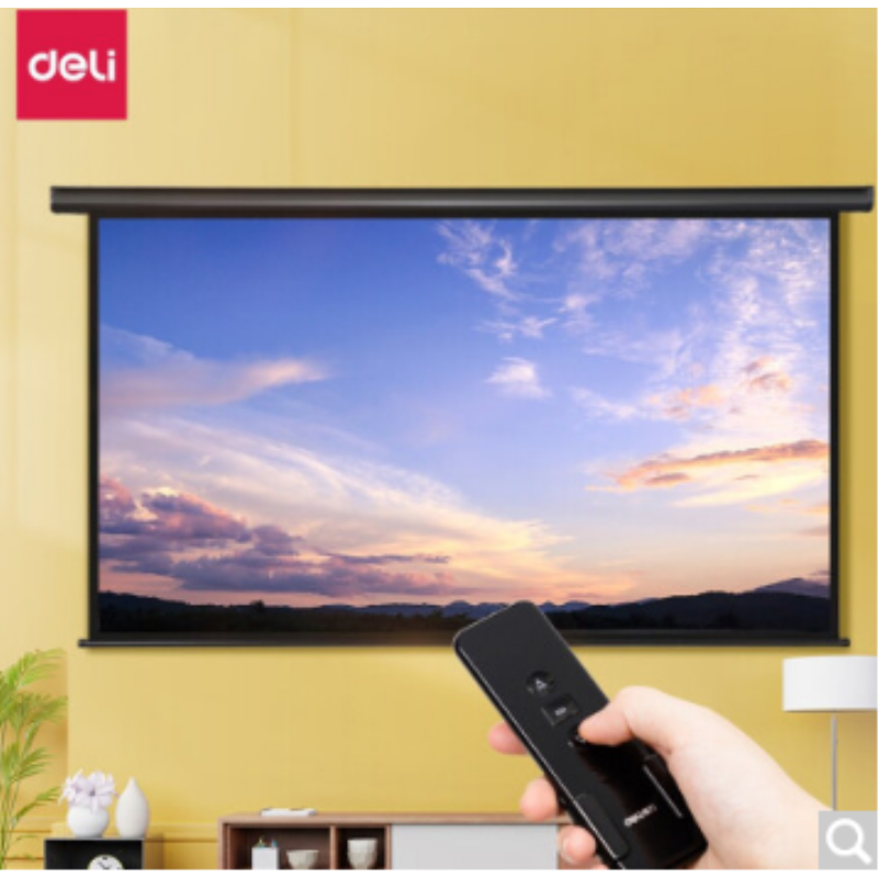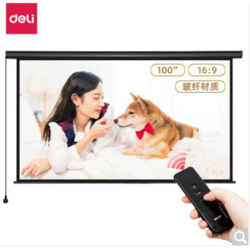 得力(deli)幕布100英寸 16:9 白玻纖遙控電動(dòng)投影幕布投影布(標(biāo)配遙控器) 家用投影儀商務(wù)辦公幕布50450