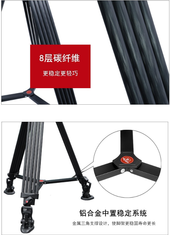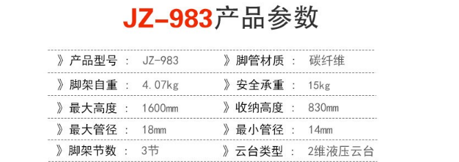 商品名稱:沃爾夫?qū)╓OLFGANG)JZ-983+YT-06碳纖維三腳架液壓云臺三腳架攝像機單反攝影攝像 碳纖維三腳架沃爾夫?qū)鵍Z-983