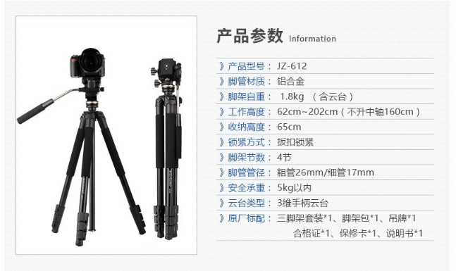 商品名稱:沃爾夫?qū)╓OLFGANG) 三腳架套裝 適用單反相機微單相機等沃爾夫?qū)鵍Z-612