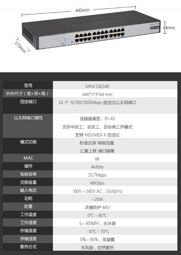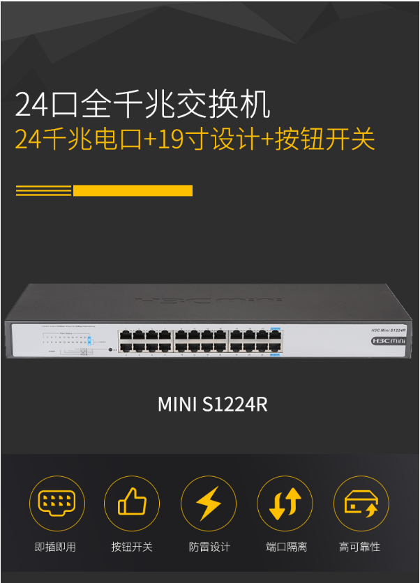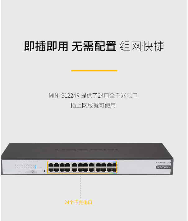 商品名稱:華三 (H3C) 24口全千兆交換機(jī)MINI S1224R 可上機(jī)架即插即用華三24口千兆交換機(jī)MINIS1224R