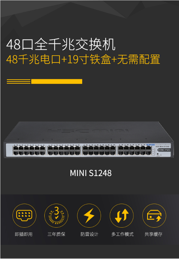 商品名稱:華三(H3C)企業(yè)級48口全千兆交換機(jī) 二層機(jī)架式防雷網(wǎng)絡(luò) 華三48口千兆交換機(jī)MINIS1248