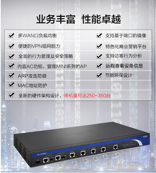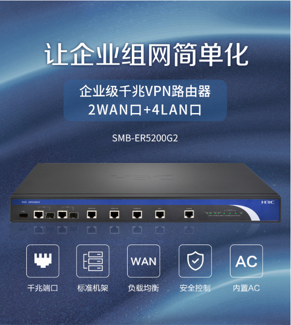 商品名稱:華三(H3C)多WAN口全千兆企業(yè)級VPN路由器 帶機量250-350 華三千兆企業(yè)級路由器ER5200G2