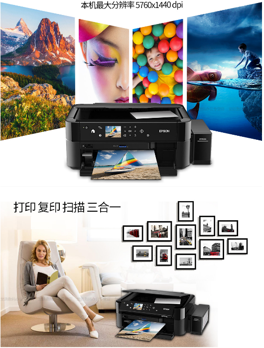 愛普生(EPSON) 墨倉式 多功能打印機一體機噴墨彩色照片連供6色 (復(fù)印掃描打印)愛普生L850