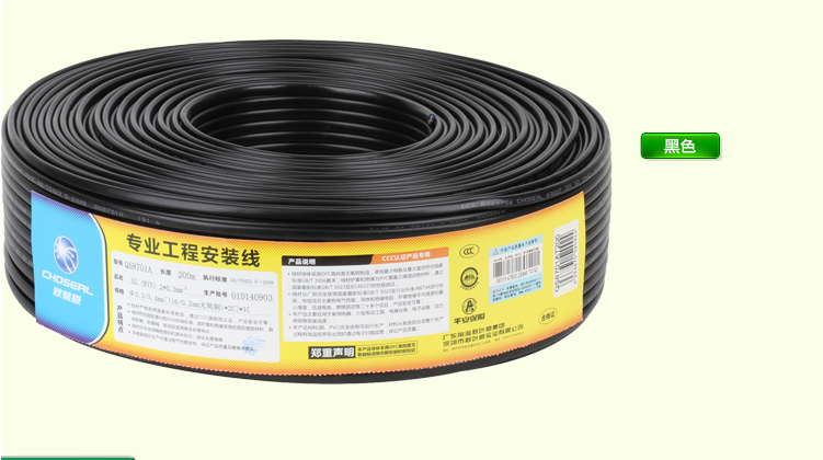 商品名稱:秋葉原(CHOSEAL)電源線RVV2*1.0純銅電線電纜 黑色 200米