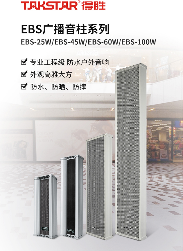商品名稱(chēng):得勝(TAKSTAR)EBS-100W 壁掛廣播音柱 廣告戶(hù)外防水工程應(yīng)用 拉鋁外殼壁掛式音箱
