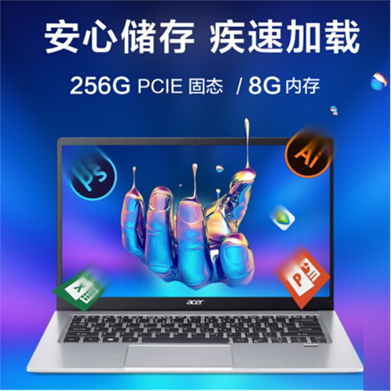 宏碁(acer)便攜式筆記本SF114筆記本電腦(四核-8G-256G-集成顯卡-高清屏)14英寸便攜超薄高清屏指紋識(shí)別商務(wù)辦公手提本 星光銀