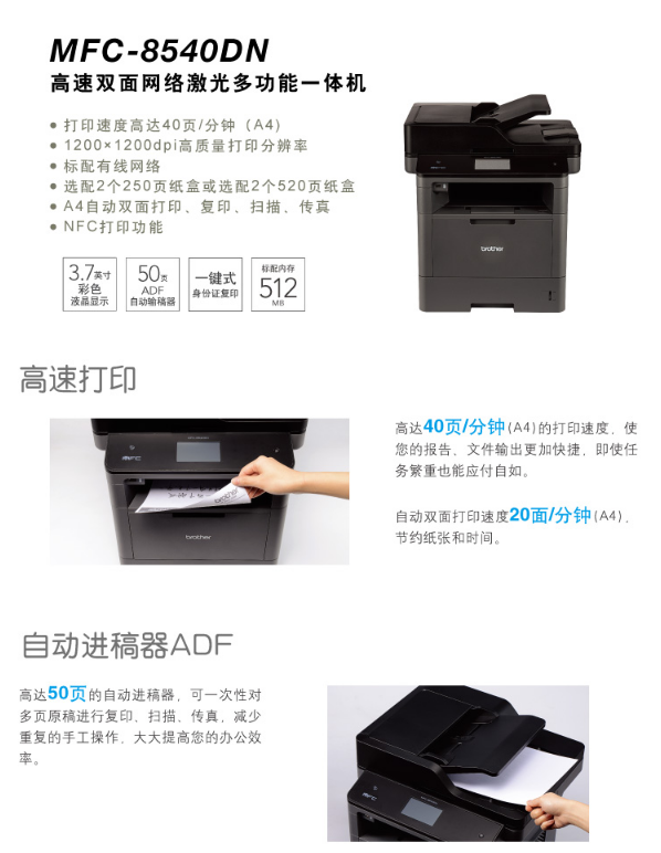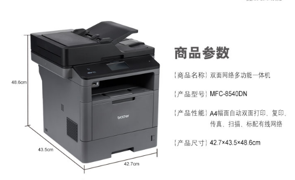 商品名稱:兄弟(brother)MFC-8540DN 多功能一體機(jī) A4打印/復(fù)印/掃描/傳真 四合一 自動(dòng)雙面 有線網(wǎng)絡(luò)