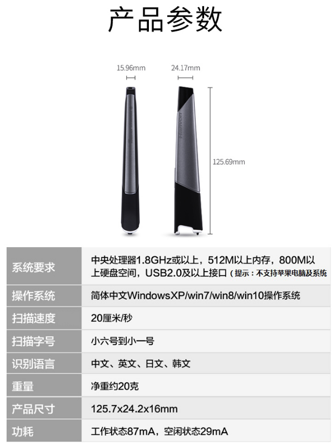 商品名稱(chēng):漢王(Hanvon)V587 掃描儀 掃描筆錄入筆錯(cuò)題掃描筆通用文字識(shí)別高速手持便攜式掃描儀