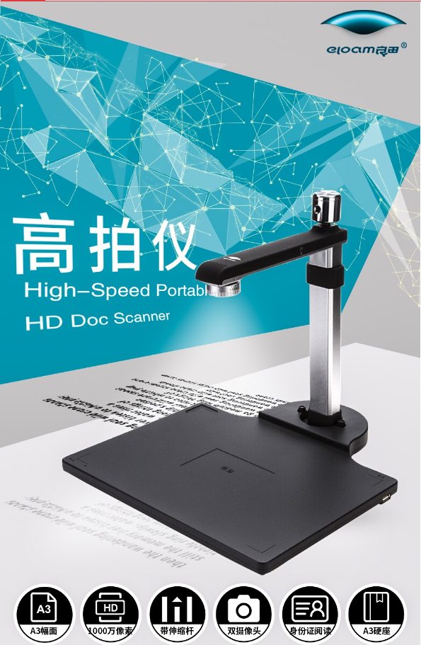 良田(eloam)S1020 掃描儀 A3高拍儀雙攝像頭A3 A4文件證件照片快速掃描儀便攜式辦公高清高速 文件票據(jù)表單文檔1000萬像素掃描儀
