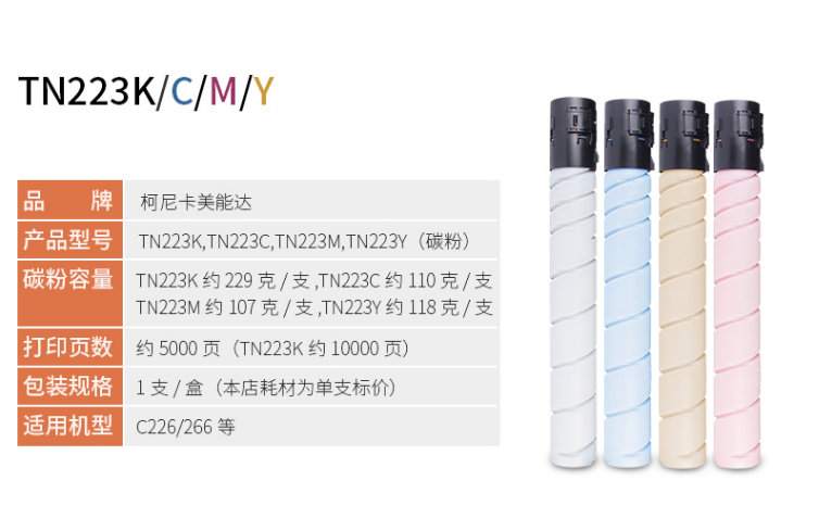 商品名稱:柯尼卡美能達(KONICA MINOLTA)C226 粉盒 復印機原裝黑藍紅黃彩色碳粉 粉盒墨粉 單支裝