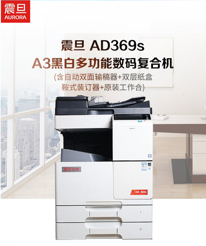 商品名稱:震旦(AURORA)AD369s 復印機 A3黑白激光復合一體打印機(打印、復印、掃描自動雙面輸稿器+雙紙盒+工作臺) 36頁/分