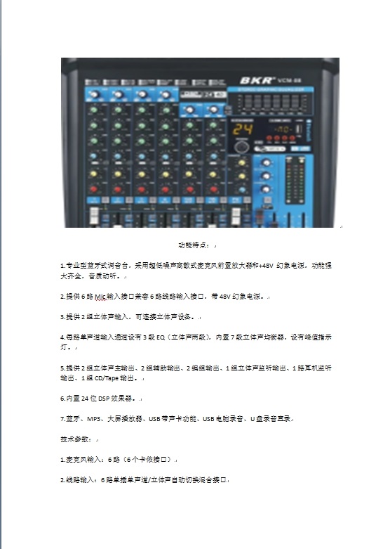 商品名稱:拜卡(BKR)VCM-08 演出調(diào)音臺(tái) 多路控制調(diào)音臺(tái)