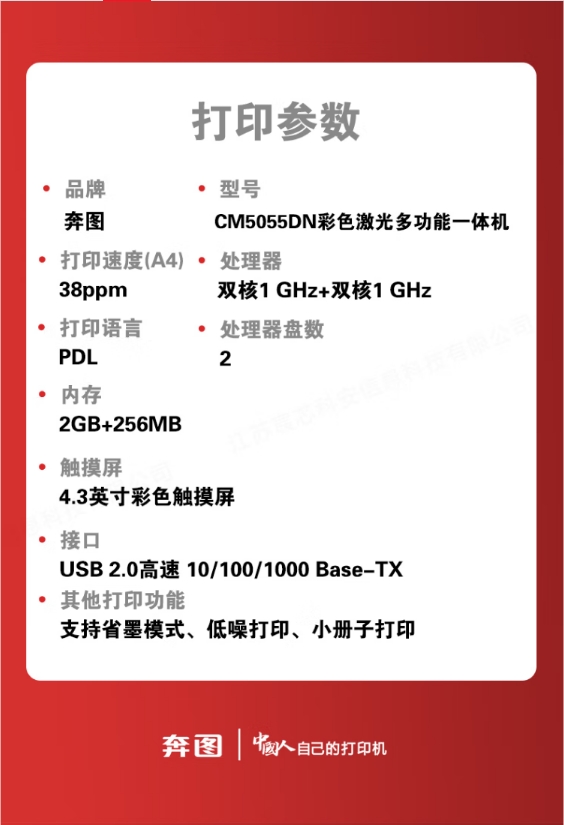 商品名稱(chēng):奔圖(PANTUM)CM5055DN A4彩色打印機(jī) A4自動(dòng)雙面彩色多功能一體機(jī)
