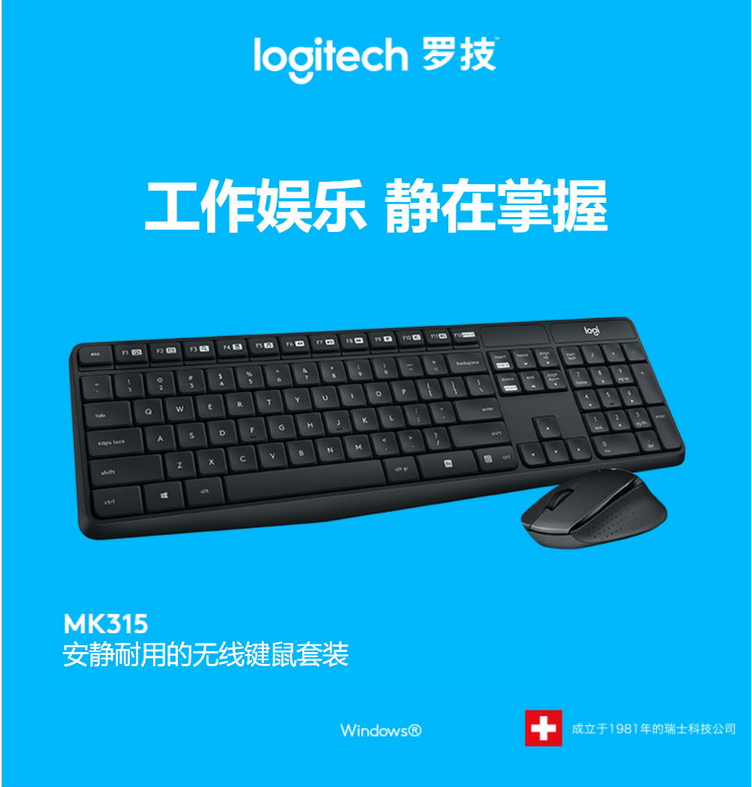 羅技(Logitech)MK315 無線鍵鼠套裝 靜音 全尺寸 黑色 一年質(zhì)保